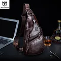 BULLCAPTAIN Fashion Genuine Leather Crossbody Bags men casual messenger bag Small Brand Designer Male Shoulder Bag Chest Pack